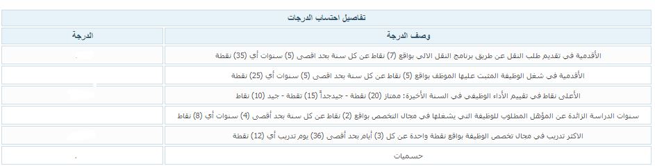 الترتيب:ترتيبك على المنقولين للجهه لنفس التخصص